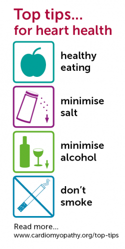 The following top tips focus on ways to keep your heart healthy, and apply to everyone, whether you have cardiomyopathy or not.