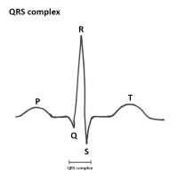The ‘cardiac complex’ follows the electrical messages that control the heartbeat through the atria and ventricles of the heart, which are transmitted via the ‘Bundle of His’ and ‘Perkinje fibres’. These electrical messages cause the ventricles to contract and pump blood out of the heart (either to the lungs or to the rest of the body).