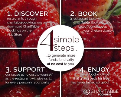 Did you know that you can help support our cause by simply having a night out in the UK? Book a table with @ChariTableBookings and select our charity – the restaurant will donate £1 per diner at no cost to you! Just download the app and away you go. It's currently available for Apple devices but will be available for Android shortly.