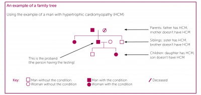 as looking at a family tree for a history of cardiomyopathy. - Genetic testing can be important for both individuals with the condition, and their family.