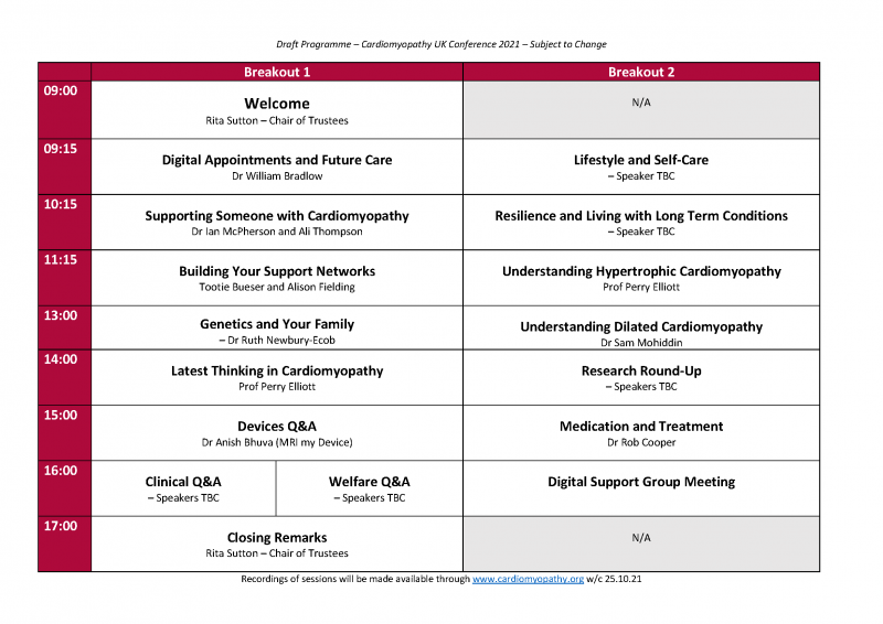 The Cardiomyopathy UK Conference 2021 takes place on Saturday 23 October from 09:00 BST