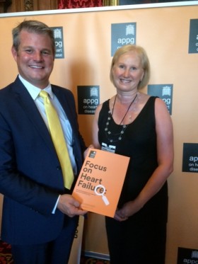 Pictured are Stuart Andrew MP, chair of the APPG enquiry into heart failure and Alison Fielding, Cardiomyopathy UK chair of trustees.