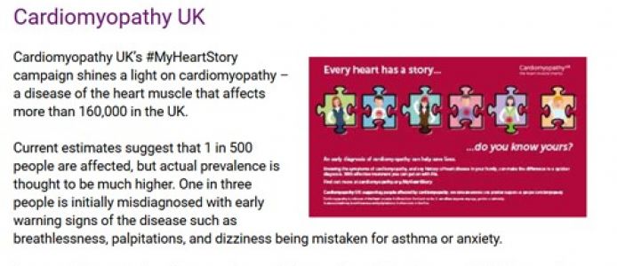 The network is one of the largest in the UK, with 12 million visitors each month, so we really appreciate their support for helping us spread the word about cardiomyopathy