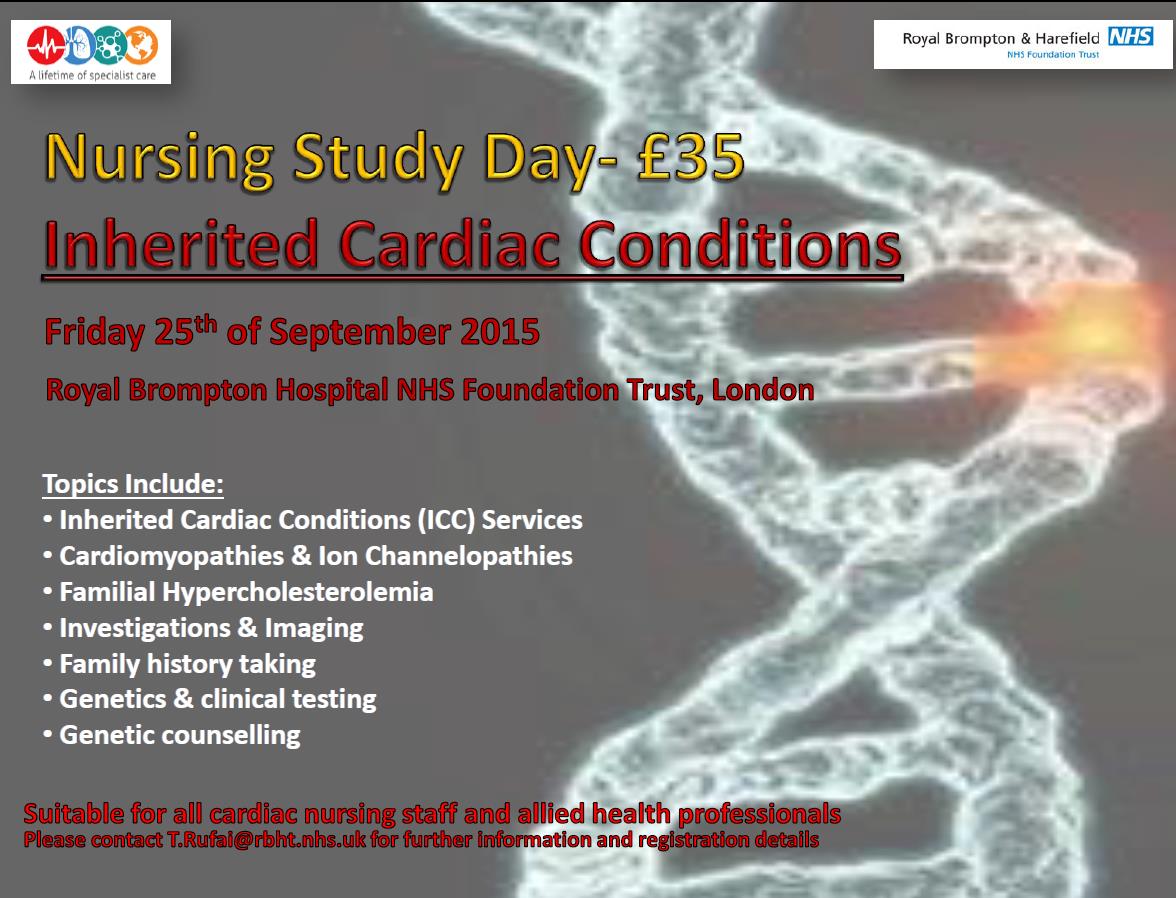 Speakers at the study day, from 8.50am to 5pm in the Oak Suite of the Britten Wing of the hospital, , will include a heart physiologist, a genetics counsellor, genetics laboratory manager, a pharmacist and specialist heart nurses.