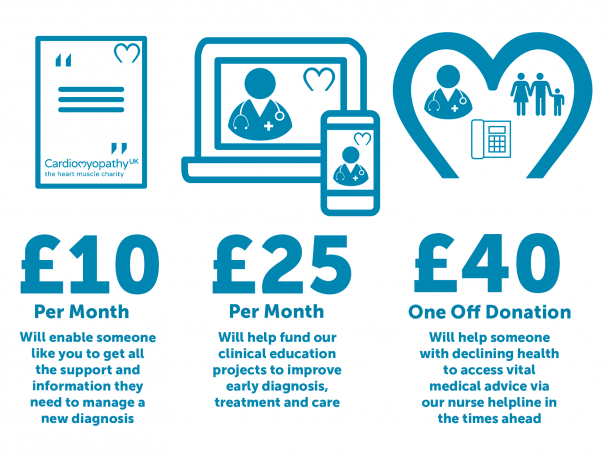 If you would like any further information, or to make a donation via the telephone please call the office on 01494 791224. Alternatively, you can email fundraising@cardiomyopathy.org