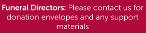 We can provide you with donation envelopes to be used at funerals. We can send them directly to you, or to your chosen funeral director.