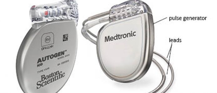 ICDs consist of a pulse generator (which includes a battery), which looks like a small box, and a number of leads. These leads are like fine coated wires, with special electrodes on the end, which are connected to the generator. These leads are either fed into the heart through a vein, or sit outside the heart, (depending on the type of ICD) where they monitor the heart’s rhythm. If needed, the leads deliver a shock from the generator to the heart to restore the heart’s normal rhythm.